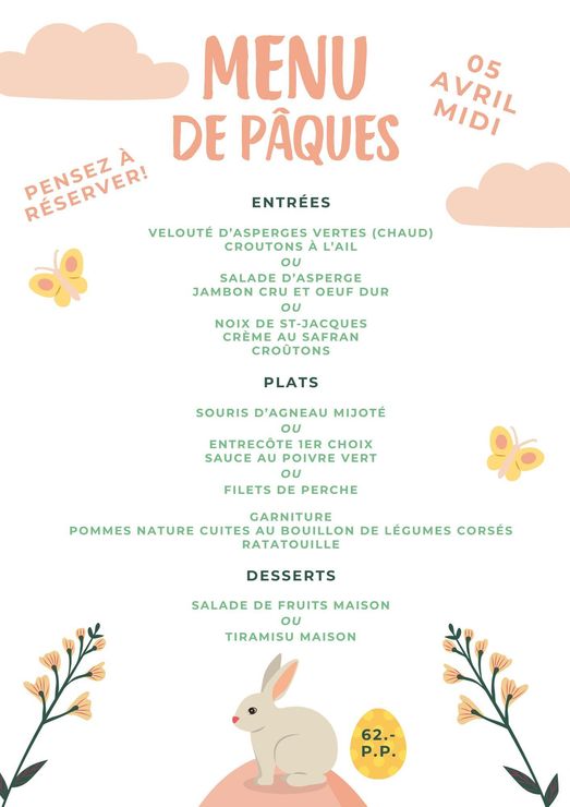Venez déguster notre menu de Pâques ce dimanche 05 avril à midi.